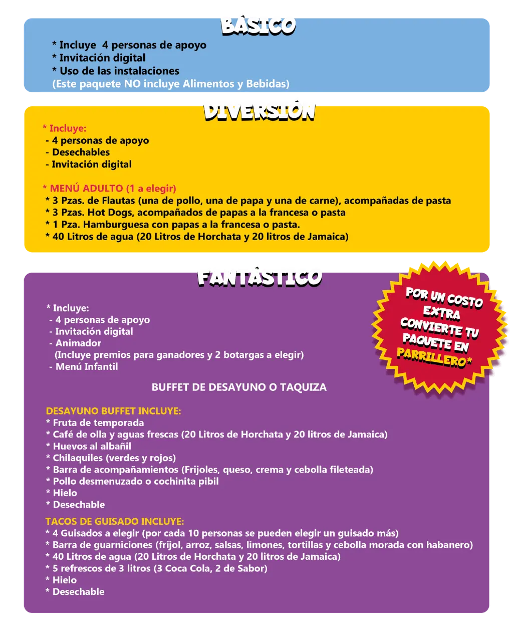 En Mi Casita de Diversión tenemos paquetes pensados para todo tipo de celebraciones, desde reuniones pequeñas hasta grandes fiestas. Además, puedes complementar tu evento con servicios adicionales que harán tu día aún más especial.